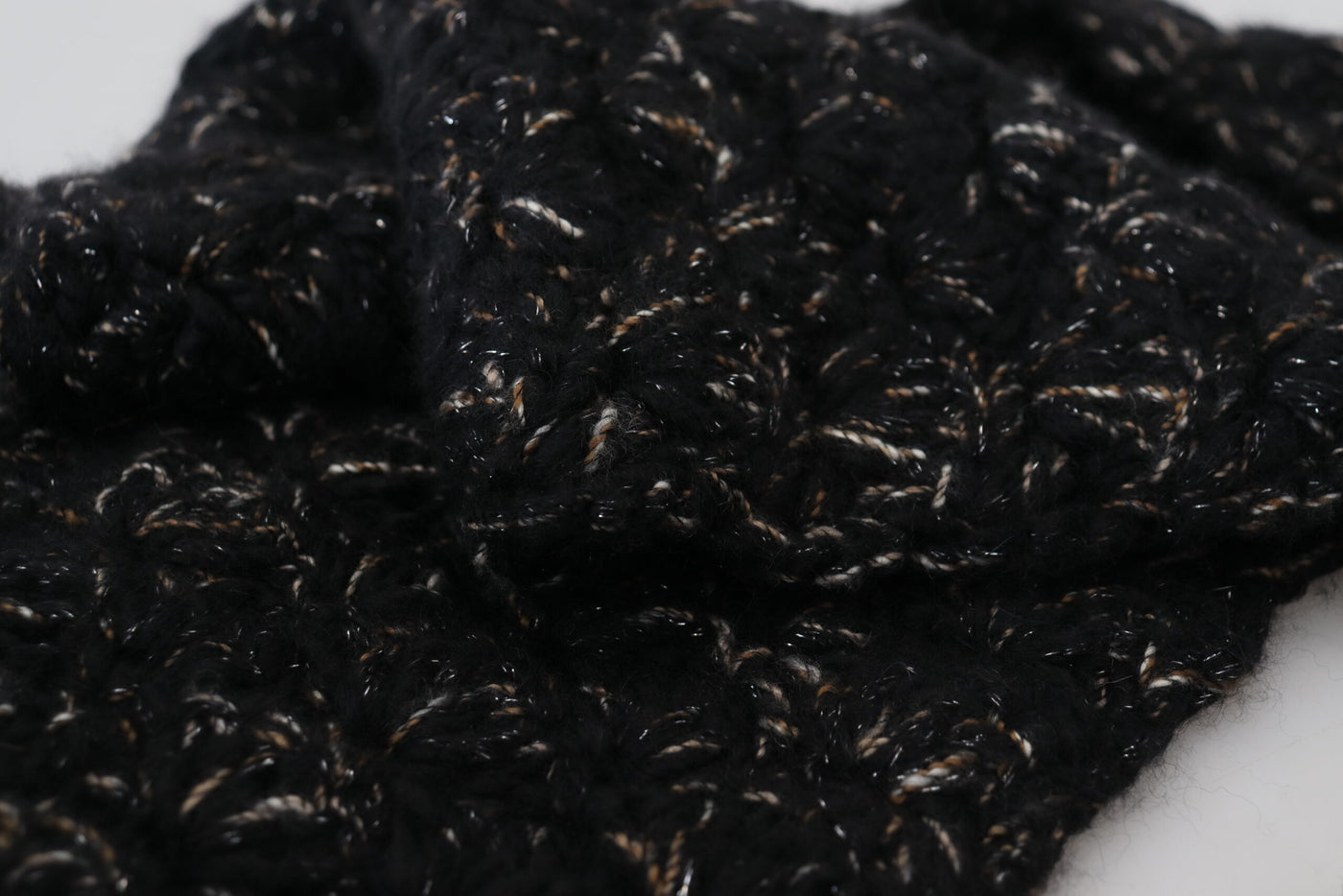 Dolce & Gabbana Black Wool Knitted Wrap Foulard Fringe Scarf