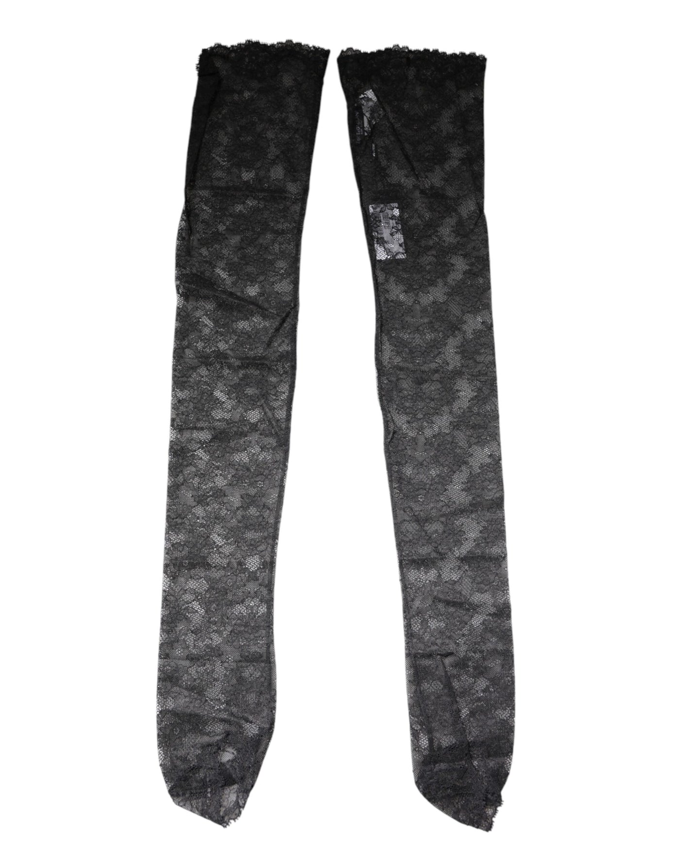 Dolce & Gabbana Black Floral Lace Cotton Stretch Stockings Socks