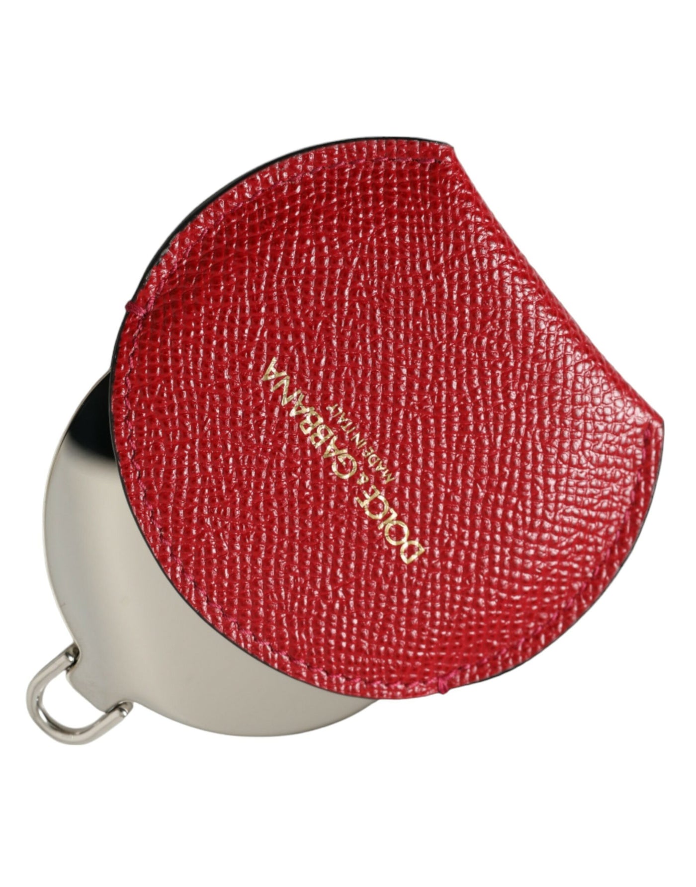 Dolce & Gabbana Red Calfskin Leather Round Logo Hand Mirror Holder