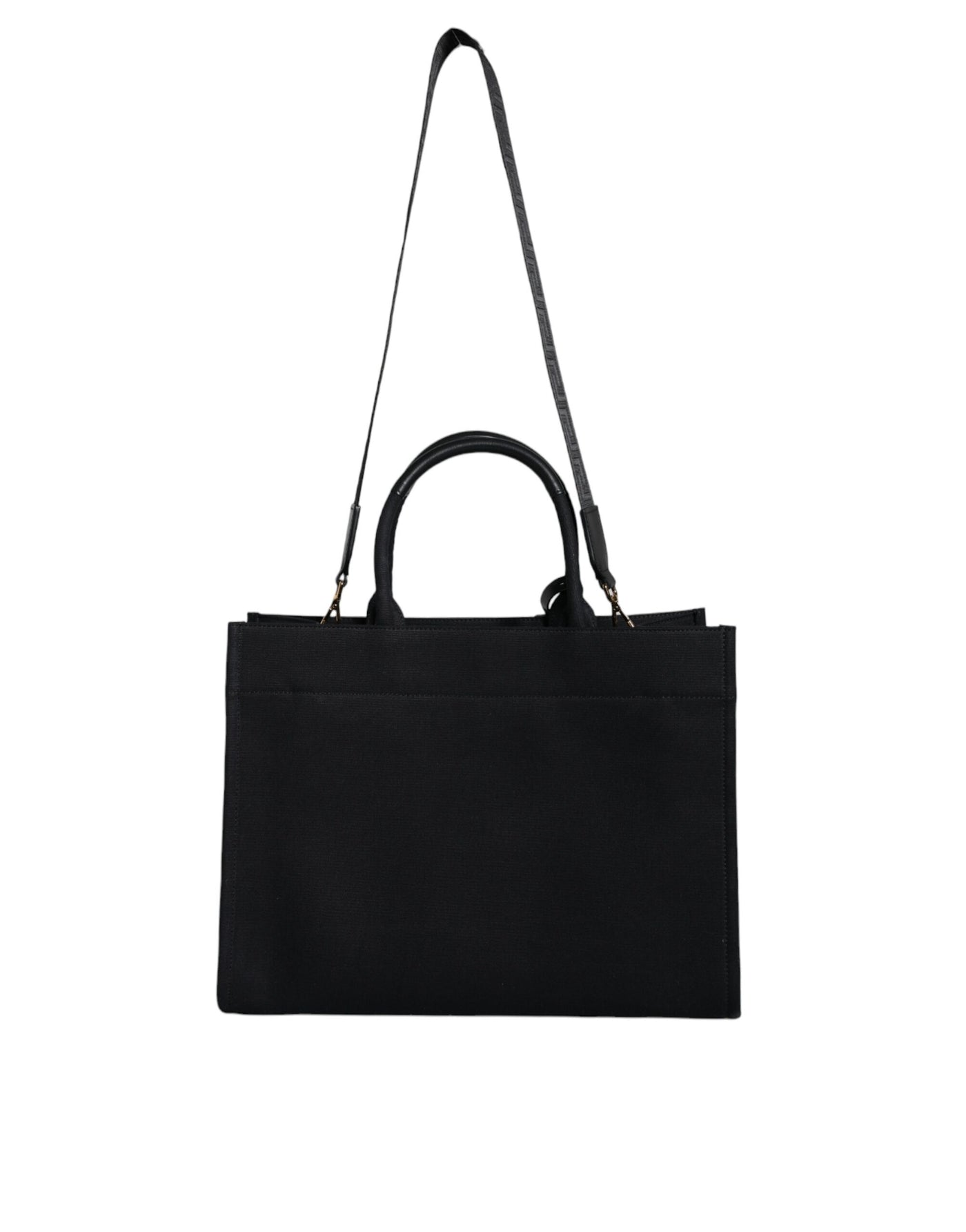 Versace Black Top Handle Canvas Leather Logo Crossbody Tote Bag