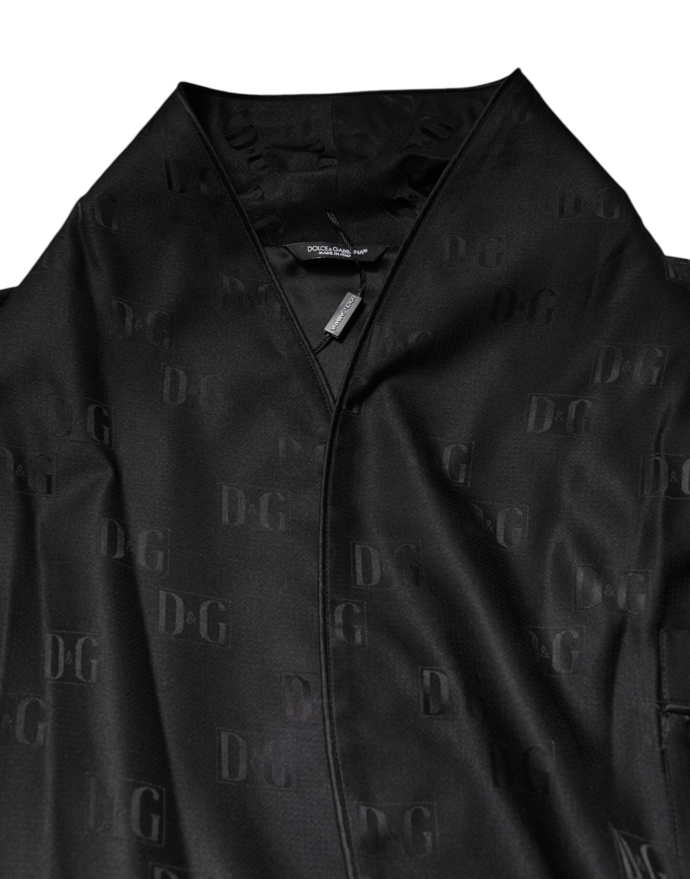 Dolce & Gabbana Black Silk DG Logo Men Wrap Robe Coat Jacket - IT46 | S