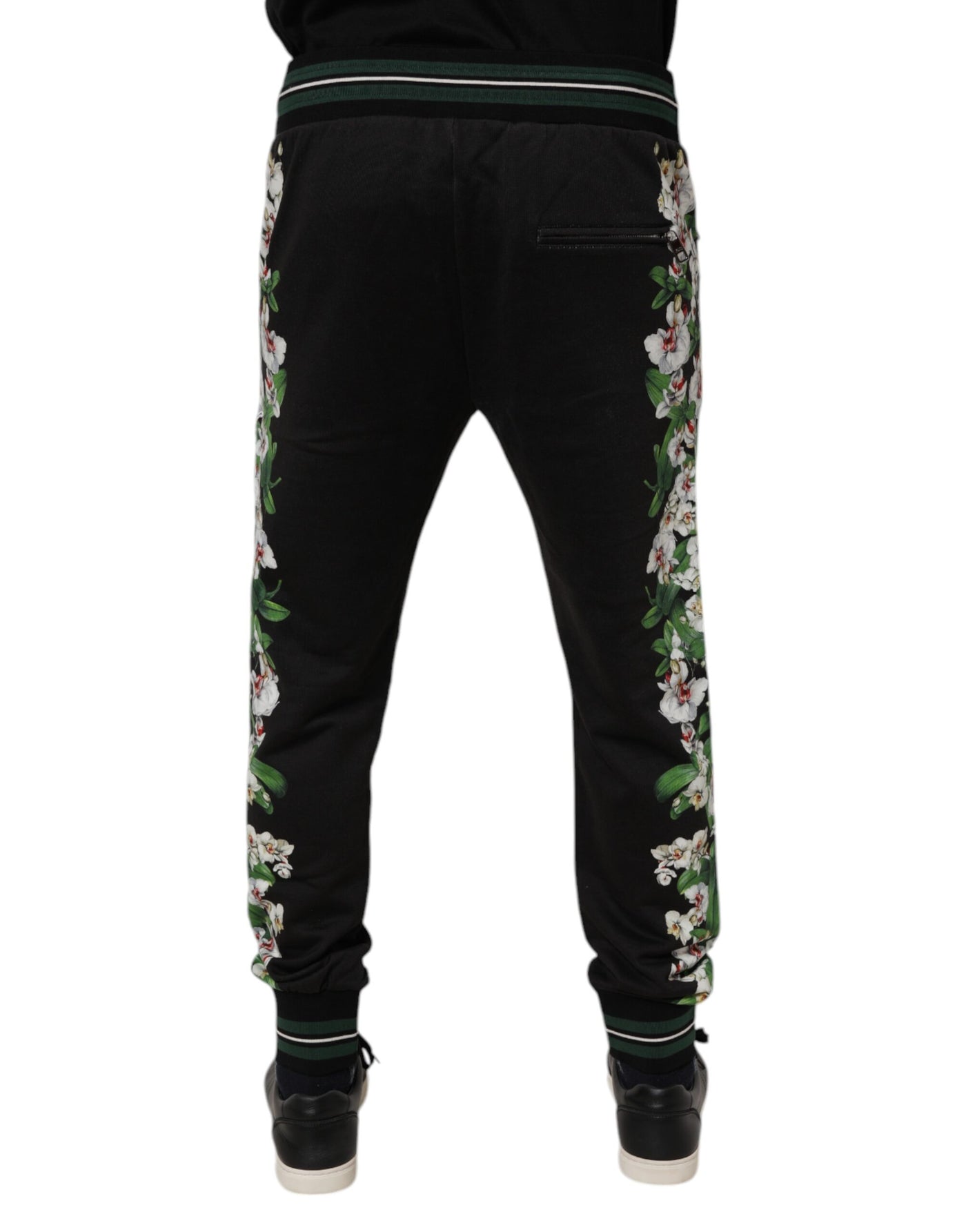 Dolce & Gabbana Black Floral King Men Jogger Sweatpants Pants