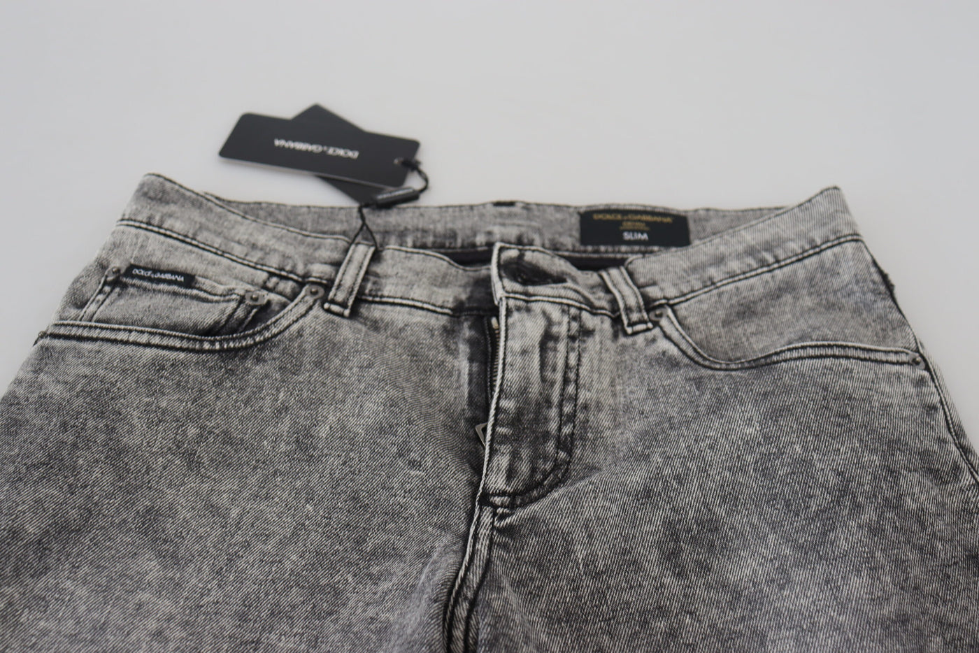 Dolce & Gabbana Grey Washed Cotton Slim Fit Men Denim Jeans - IT44 | XS