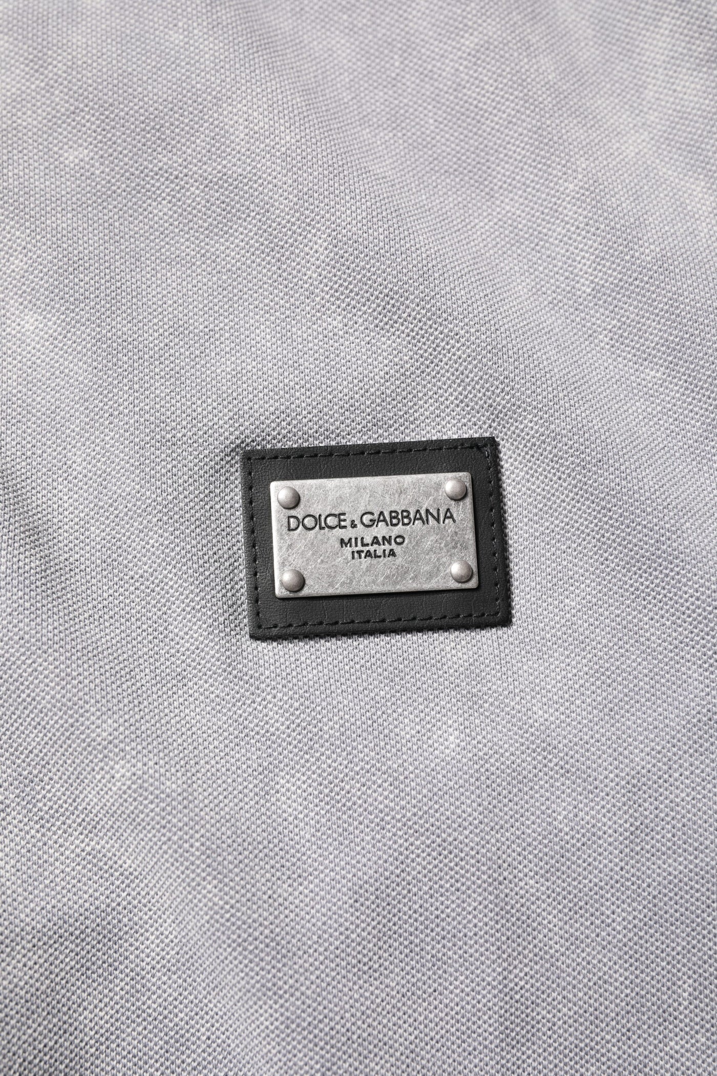 Dolce & Gabbana Gray Logo Plaque Cotton Men Polo Shirt T-shirt