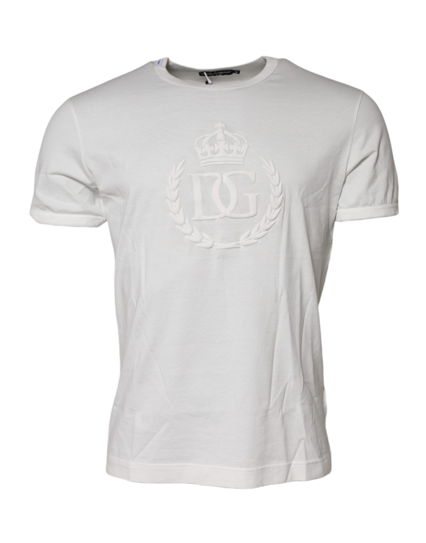 Dolce & Gabbana White Cotton DG Crown Embossed T-shirt - IT48 | M