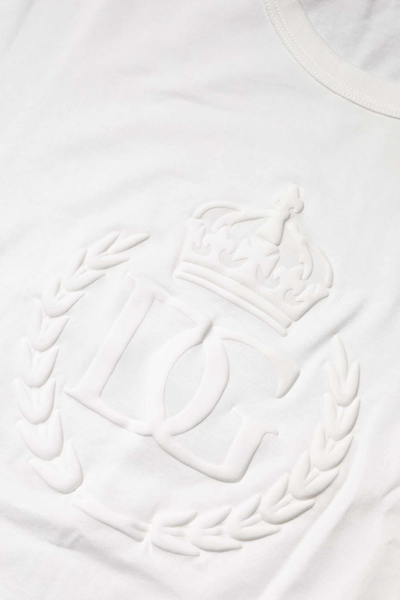 Dolce & Gabbana White Cotton DG Crown Embossed T-shirt