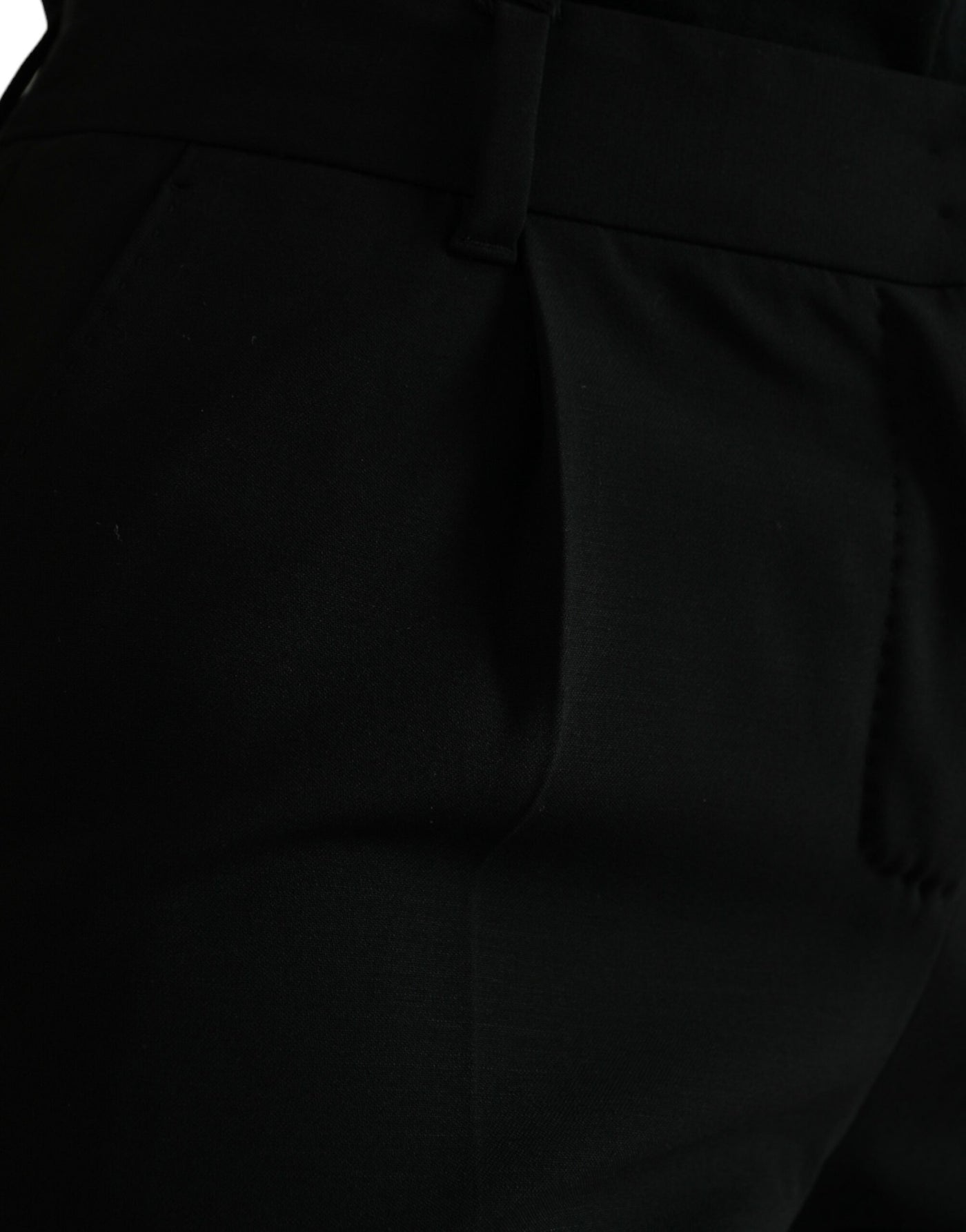 Dolce & Gabbana Black Wool Mid Waist Tapered Pants