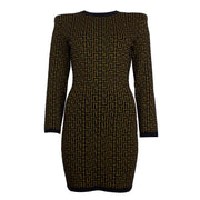 Balmain, brown and black monogram sheath dress with back zipper closure.