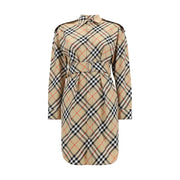 Burberry’s cotton chemisier Dress is an iconic and versatile piece featuring a classic collar and front button closure. The two side welt pockets add a practical touch, while the matching adjustable and removable belt defines the waist. Belt loops, positioned at three heights, allow you to customize the fit. Complemented by the historic all-over Check Archivio pattern, this suit expresses timeless elegance and style.