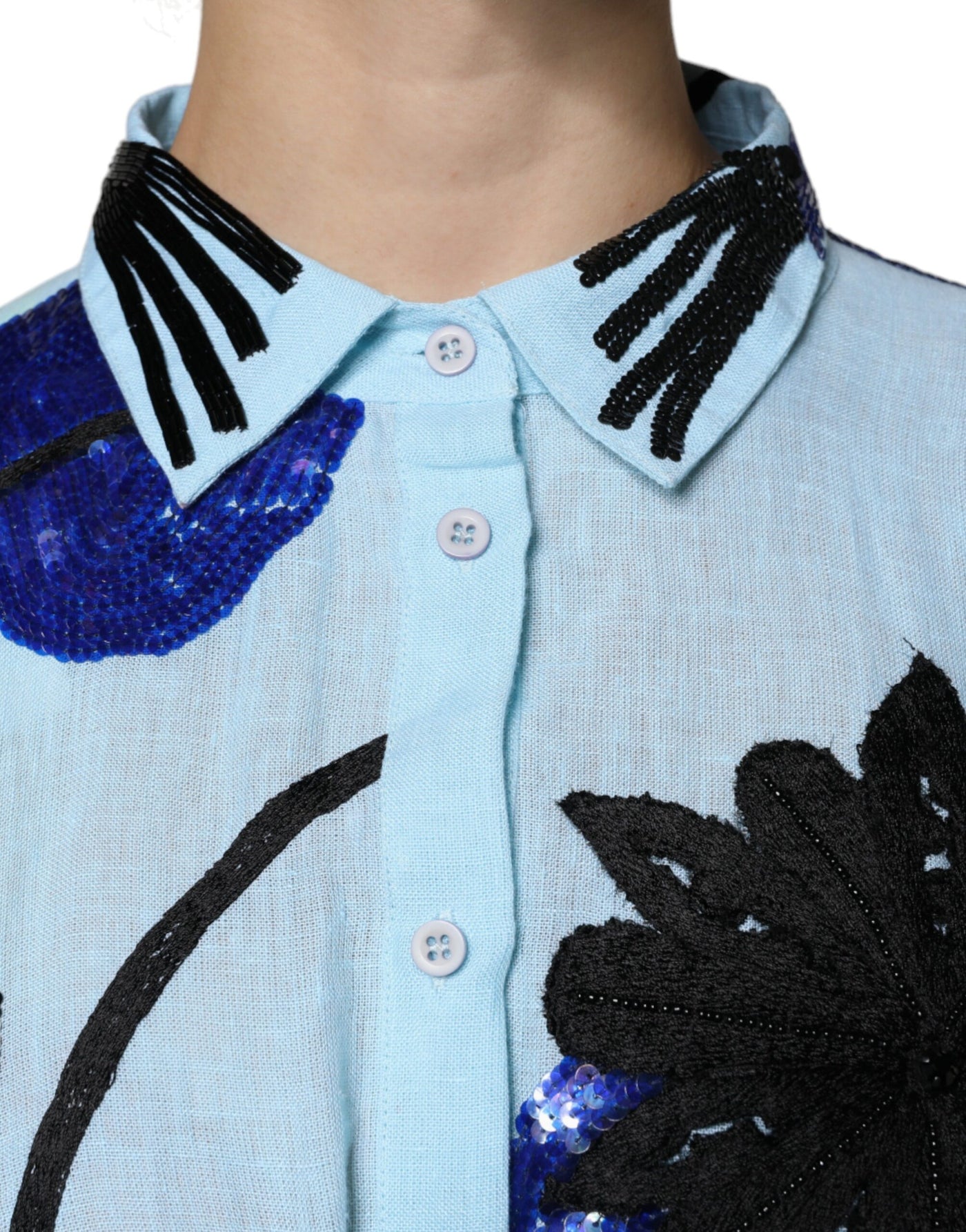 Christian Pellizzari Light Blue Floral Embellished Shirt Maxi Dress - IT42|M