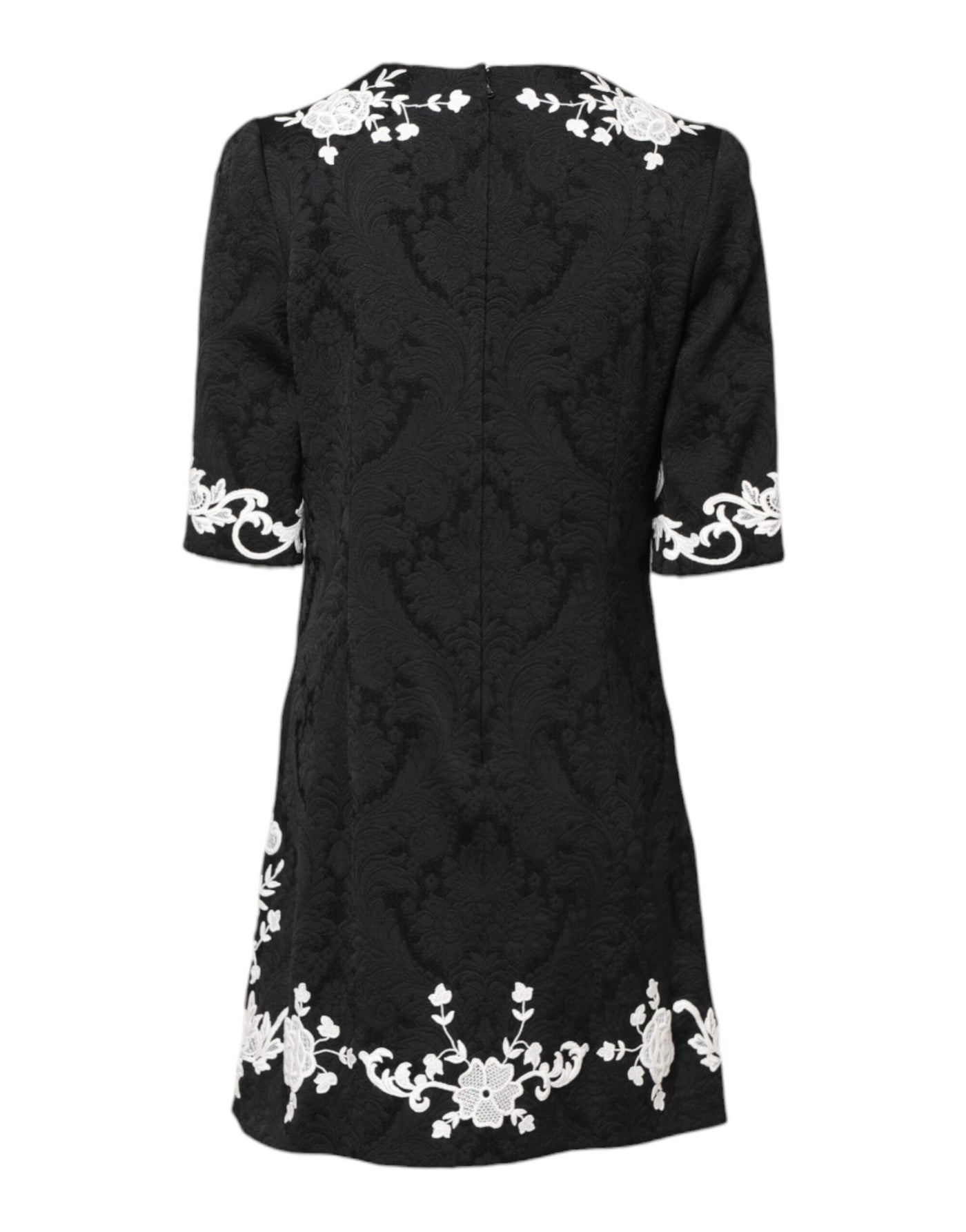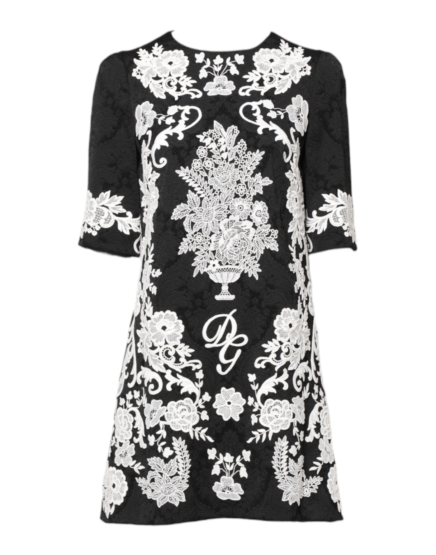 Inform when this item available Dolce & Gabbana Black Floral Lace Short Sleeves Mini Dress