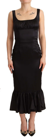 Inform when this item available Dolce & Gabbana Black Silk Stretch Sheath Mermaid Midi Dress
