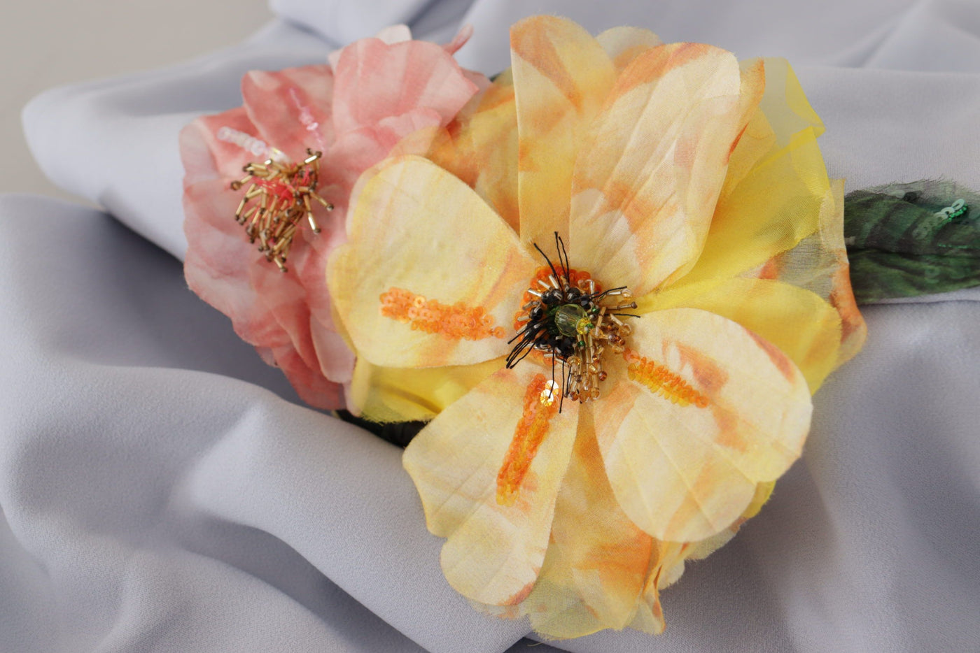 Inform when this item available Dolce & Gabbana Blue Floral Applique Midi Viscose Dress