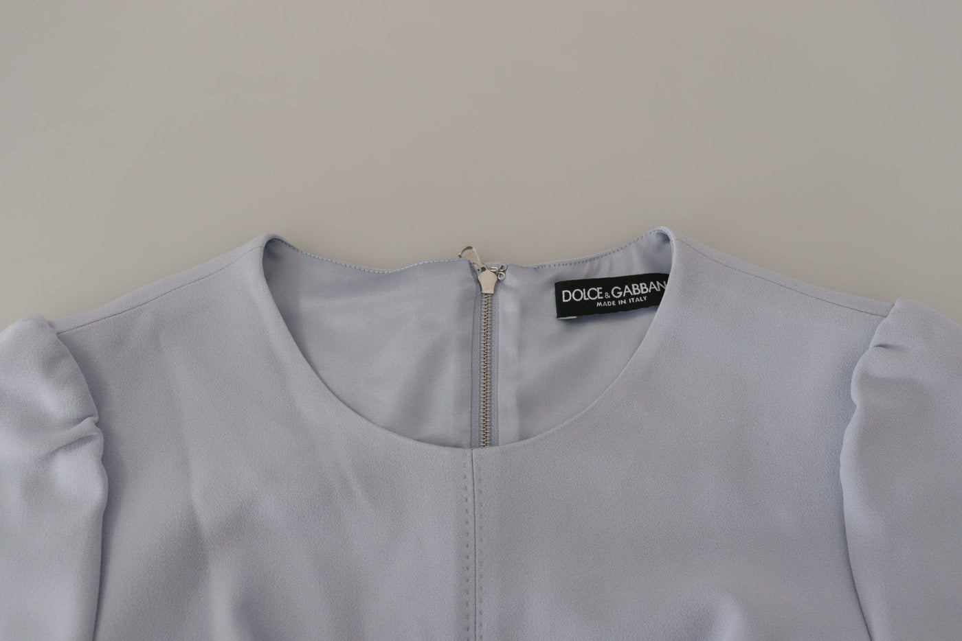 Dolce & Gabbana Blue Floral Applique Midi Viscose Dress