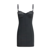 Dolce&Gabbana’s fitted bodice Dress features bra-like underwires for shaping structure, with a sweetheart neckline and adjustable straps for a custom fit. The short style closes with a back zipper and is completed with a leopard-print lining that adds a bold detail.