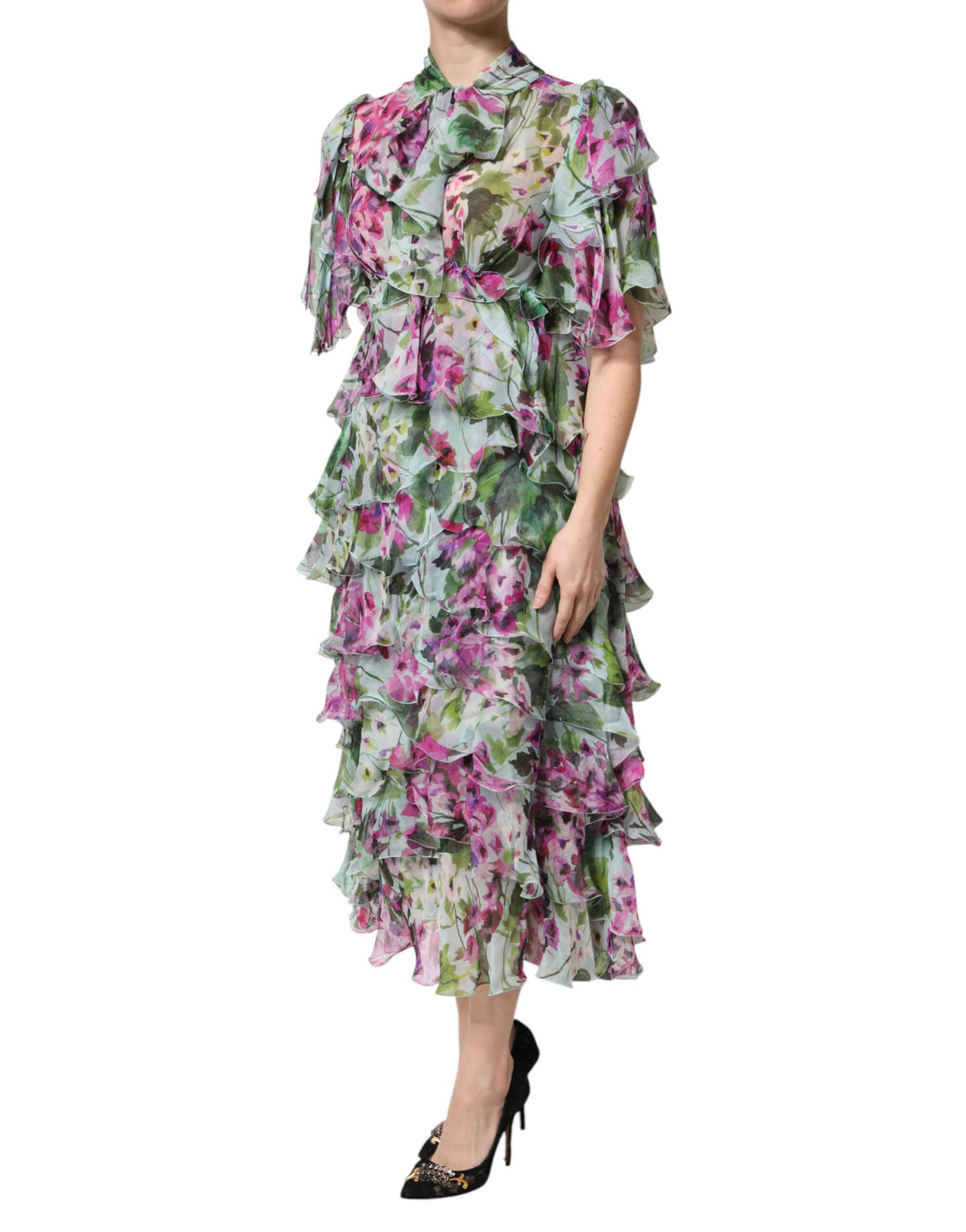 Inform when this item available Dolce & Gabbana Multicolor Floral Silk Midi Layered Dress