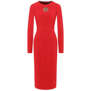 Dolce & Gabbana long-sleeved midi dress with sacred heart embroidery in rhinestones and red velvet, round neckline, zip fastening on the back