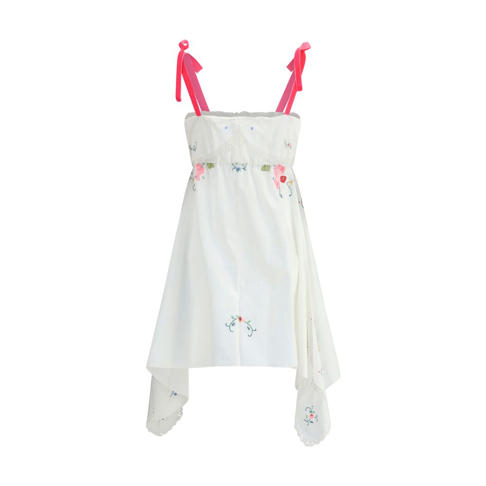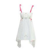 Ella’s Asymmetrical Short Dress combines elegance and originality. Thin velvet straps and an elasticized neckline offer comfort and style, while the asymmetrical hemline and crochet details add a dynamic and refined touch. All-over floral appliqués complete the look, making this dress perfect for special occasions with a fresh, feminine touch.