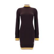 Fendi’s Wool Mini Dress is a garment with a refined and contemporary style. The long-sleeved model is enriched with multilayer ribbed details on the collar, cuffs and hem, creating an elegant trompe-l’œil effect. The contrasting iconic brand monogram stands out on the front, adding a distinctive touch.
