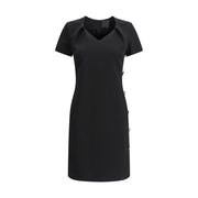 Dress by Givenchy, short-sleeved design, zipper and hook-and-eye closure at back, V-shaped front drain, side slit, button detail with iconic brand logo applique on side panel, monochrome pattern, regular fit.