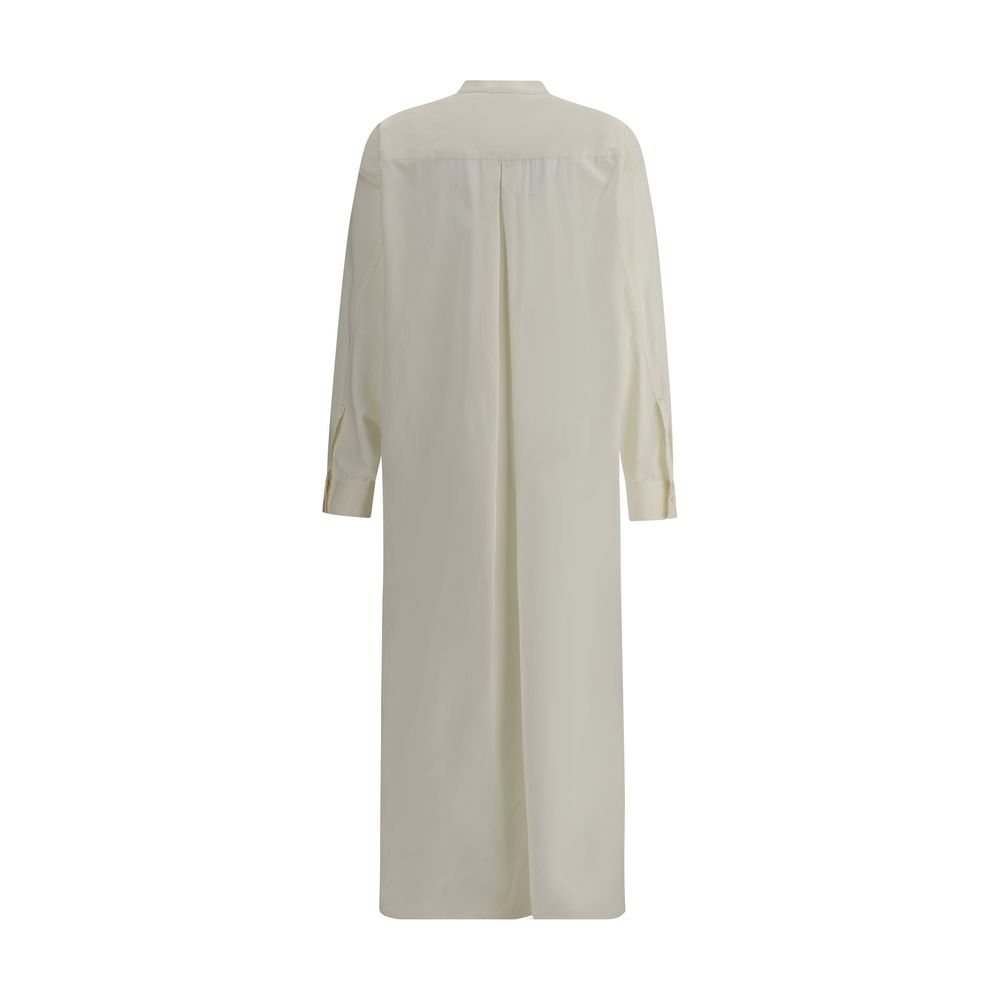 The Jil Sander long shirt Dress is a garment that expresses minimalist elegance and modernity. The collarless design gives a clean and sophisticated look, while the front button closure maintains the classic and functional structure. The two side slits add movement and dynamism to the model, without compromising its refined line. The iconic embroidered logo on the front adds a discreet touch of recognition, emphasizing the quality and authenticity of the brand. A versatile and sophisticated dress, perfect for elegant occasions or for an everyday look with a touch of luxury.