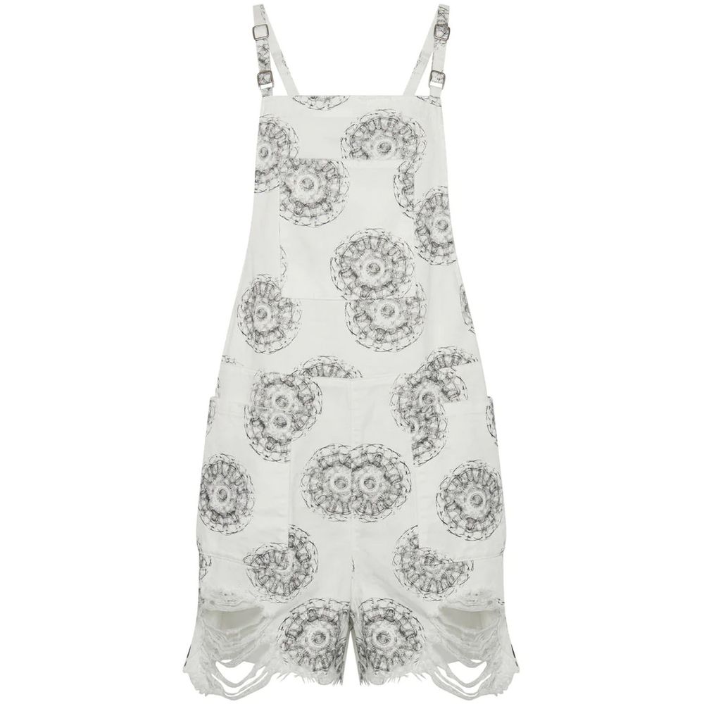 Unleash your edgy style with One Teaspoon’s denim mini dress, crafted for those who dare to stand out. This fashion-forward piece features striking shoulder pads, a quartet of capacious pockets, and a unique abstract pattern that adds an artistic touch. Completed with a frayed hem for an added rebellious twist and a convenient back zipper, this dress is your perfect pick for making a bold statement.