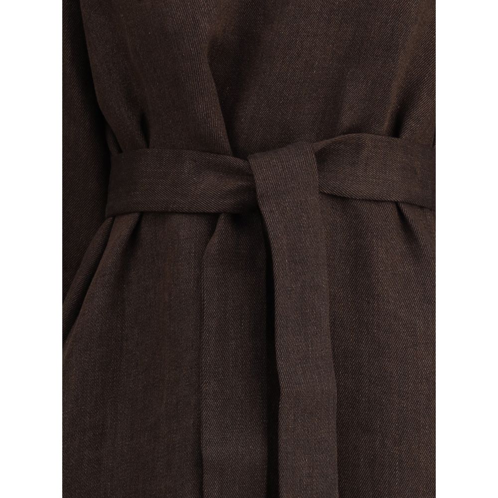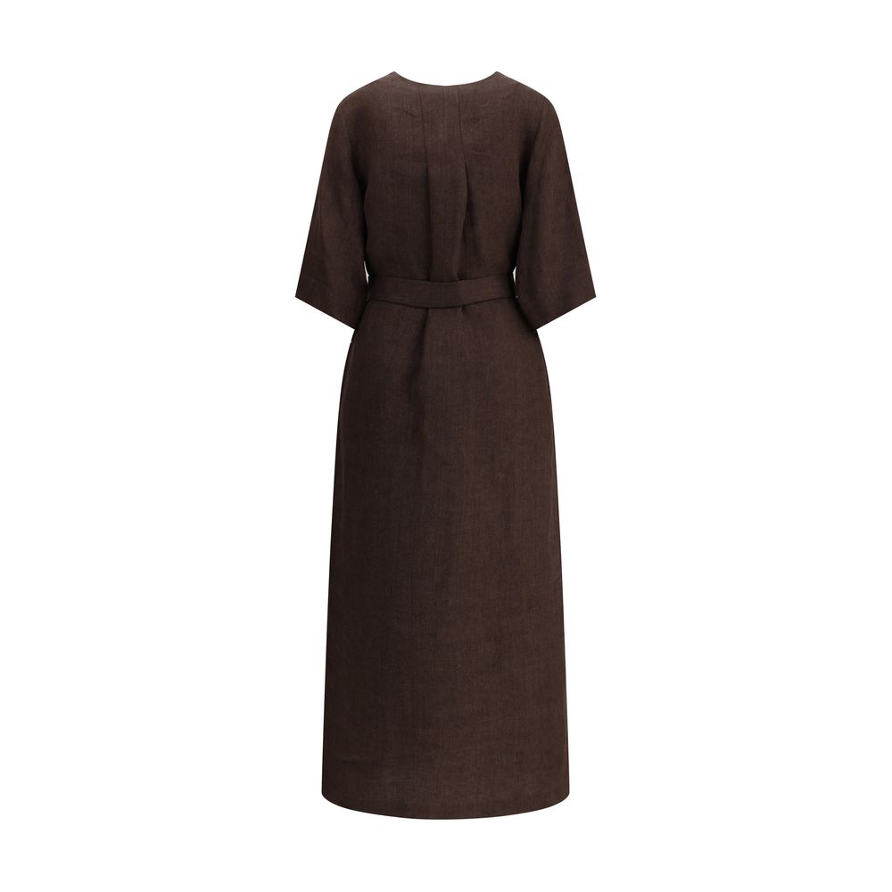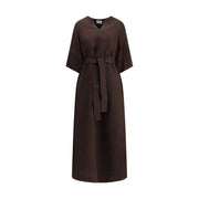 The Betulla Long Dress by P.A.R.O.S.H. is an elegant and comfortable garment featuring a mini V-neck and a loose-fitting pattern that provides freedom of movement. The wide 3/4 sleeves add a cool touch, while the two side welt pockets and two side slits complete the practical and modern design. The matching knotted sash at the waist allows you to customize the fit, creating a defined silhouette. Perfect for a sophisticated yet relaxed look.