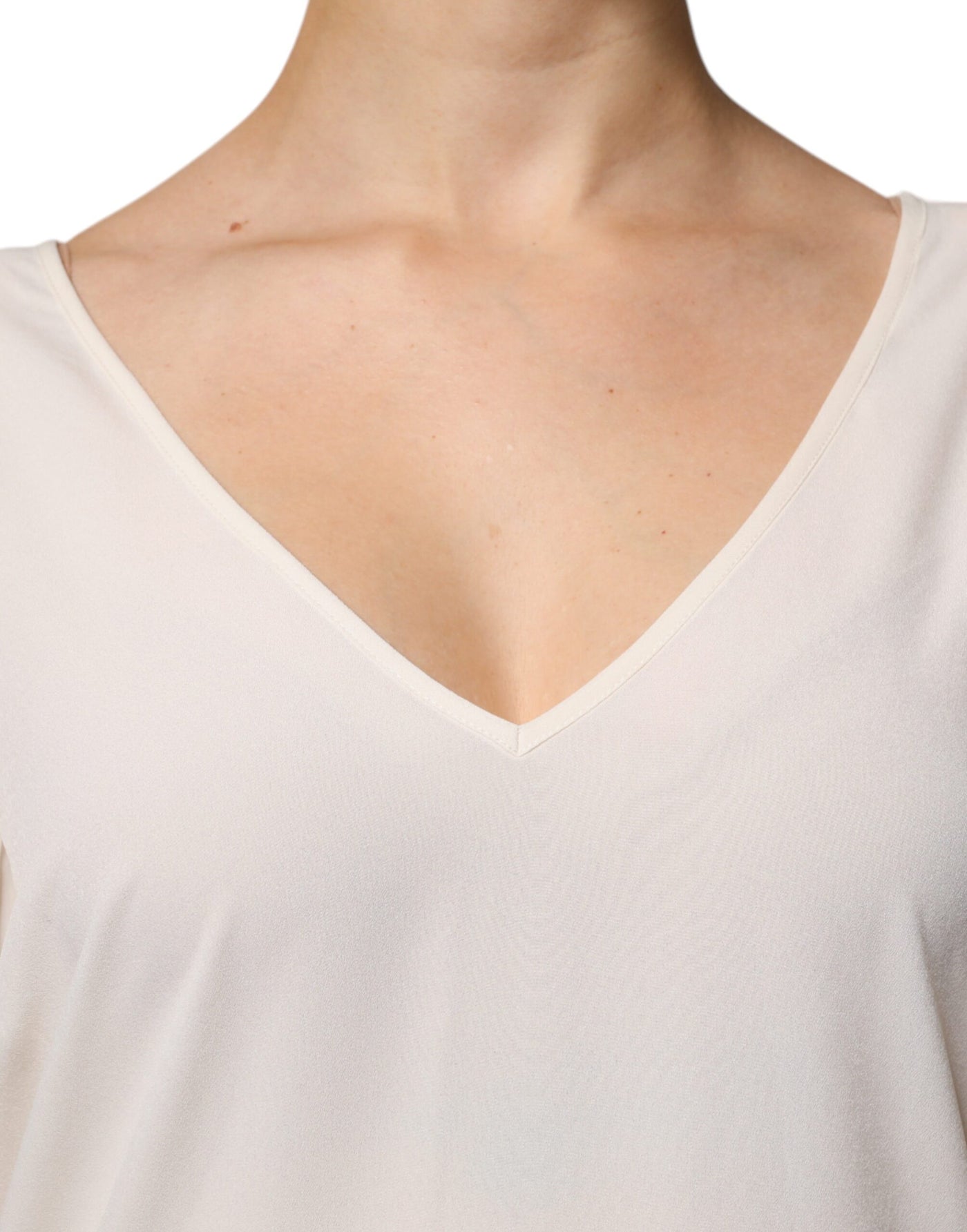 Peserico Off White Short Sleeves V-neck Shift Midi Dress - IT40|S