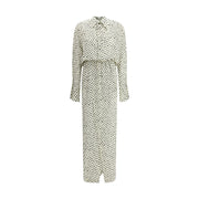 Petar Petrov’s silk long Dress features an all-over polka dot pattern that adds a touch of playful elegance. It is a long-sleeved design with adjustable button cuffs and a classic collar that completes the sophisticated design. The front button closure and elasticated waistband offer a comfortable fit. In addition, the dress features wide slits on the front and back, giving the garment movement and sophistication.