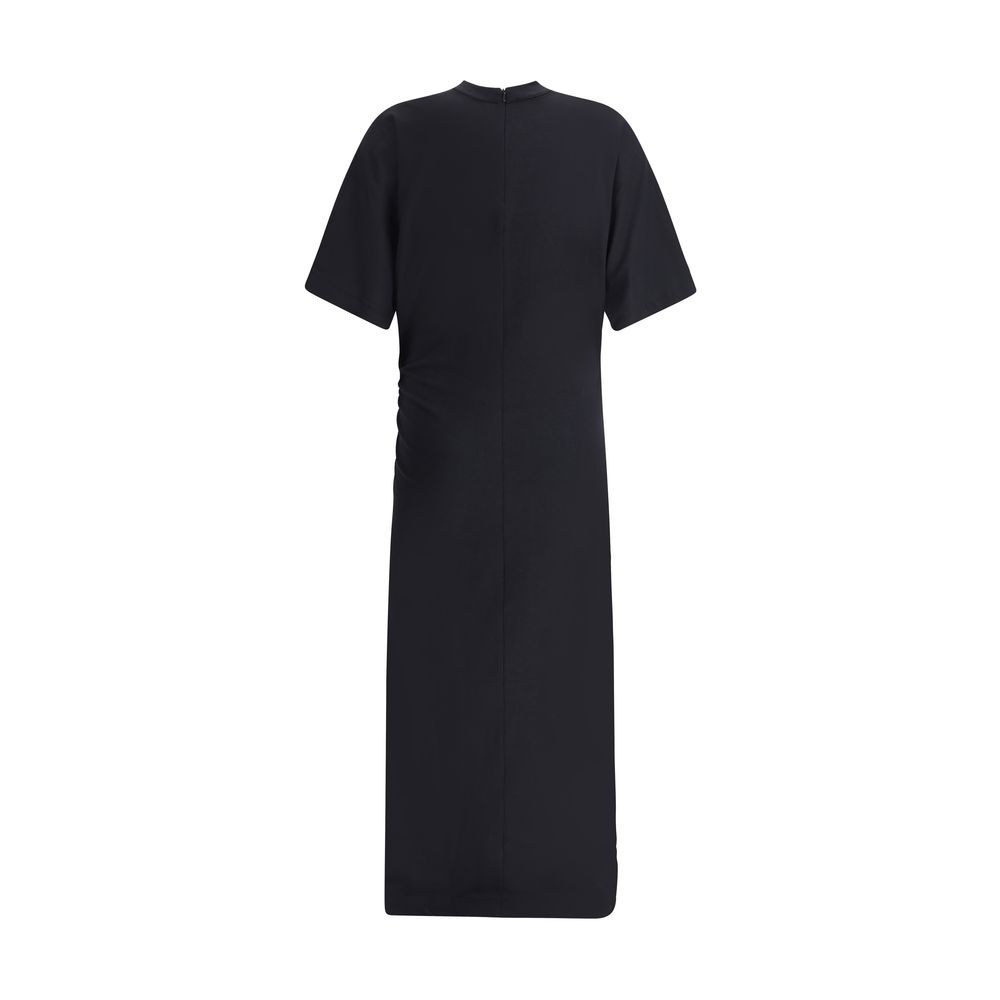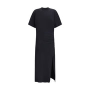 Pinko’s Marvin long Dress is a garment with a feminine and modern style, perfect for enhancing the silhouette. Made from lightweight cotton, it features short sleeves, a ribbed crew neck and detachable padded shoulder straps for a customizable fit. The concealed back zipper closure ensures a clean line, while the side gathers sculpt the figure with elegance. A deep slit on the side panel completes the design, giving movement and a sensual touch.