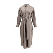 The Balloon Dress by Sa Su Phi fine breathable cotton is distinguished by its elegant volume that drapes fluidly over the body, balancing structure and lightness. Gathered details at the back create a sculptural effect, adding depth to a minimalist and sophisticated design. The pointed collar and high cuffs lend a modern touch, while the two side welt pockets offer practicality. Slits on the side panels allow the matching belt to be looped through the front for a defined, feminine silhouette.