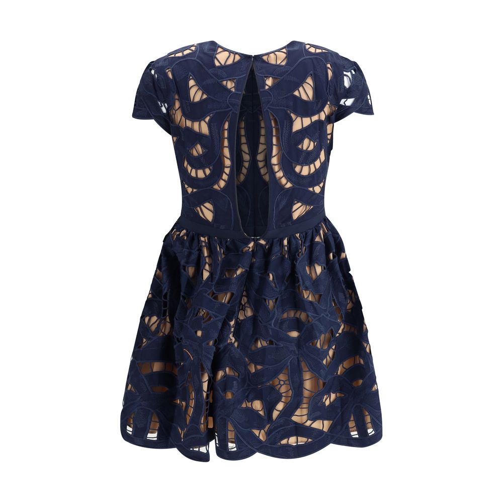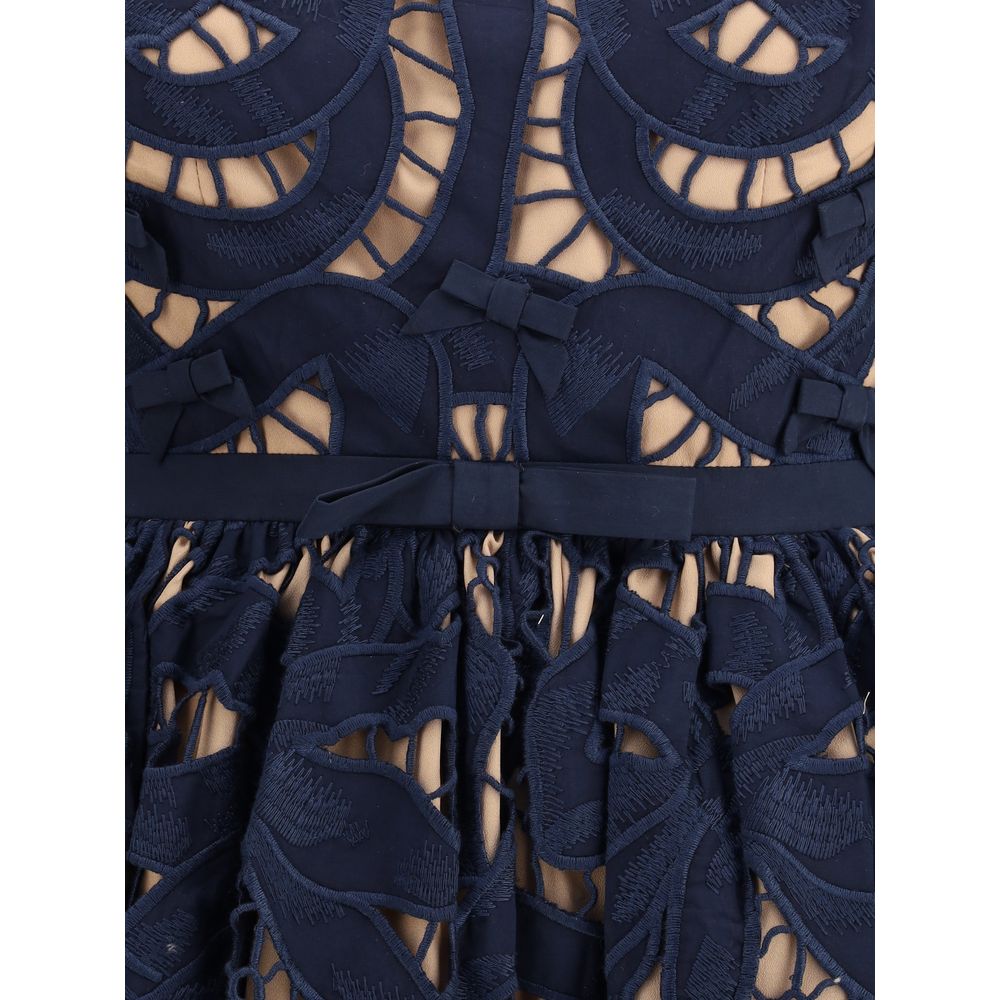 Self-Portrait’s Embroidered Short Dress is a delicate and feminine piece featuring a simple crew neck and short sleeves. The back zipper closure ensures a perfect fit, while the applique bows on the front add a romantic and refined detail, giving personality to the design.