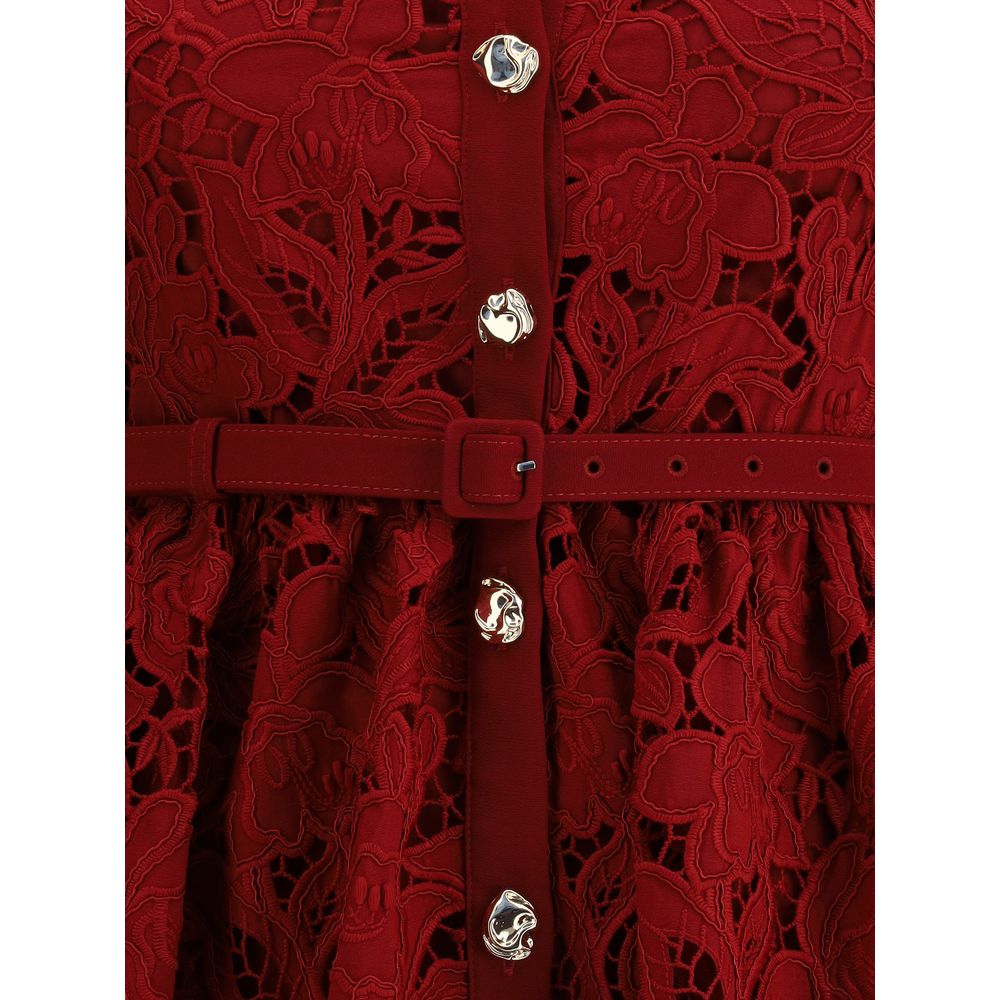 Self-Portrait’s Embroidered short Dress combines elegance and sophistication in a thoughtful design. Featuring a classic collar and a front closure with embossed buttons, it has short sleeves and a matching belt that defines the waist, enhancing the silhouette with style.