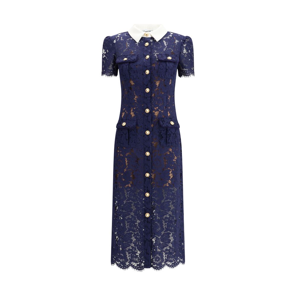 Self-Portrait’s Long lace Dress combines romance and structure in a refined design. Featuring a front button closure, it has a contrasting collar and four patch pockets with flaps. Embossed buttons add a distinctive touch, while short sleeves complete the look with elegance.