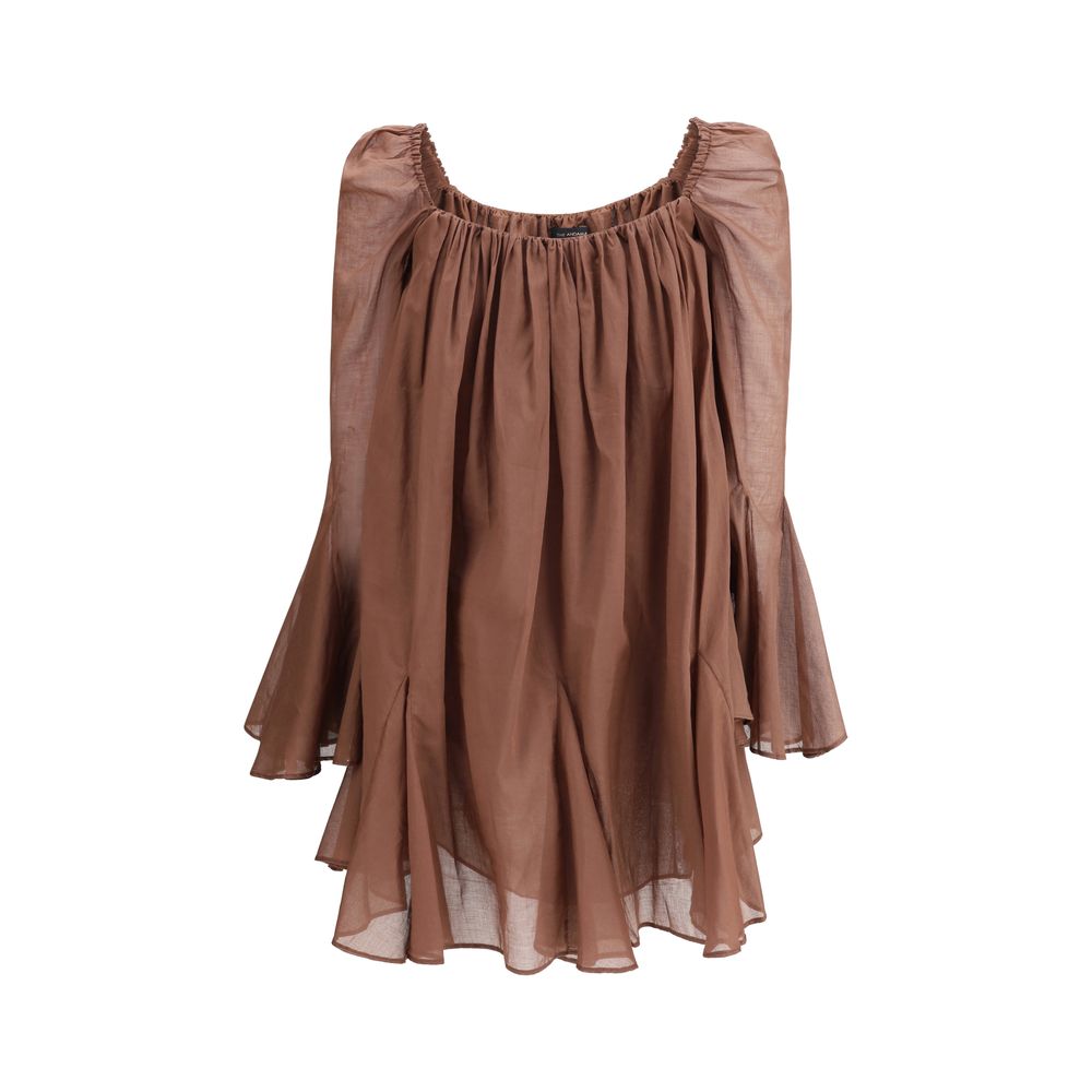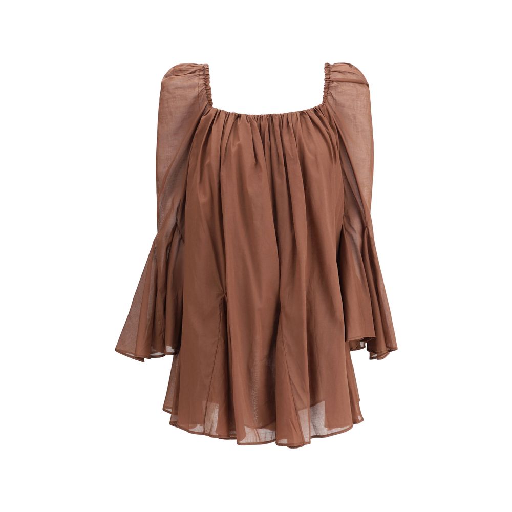 The Whitney short Dress by The Andamane is a cool and sophisticated piece, perfect for an elegant summer look. The flared design, with a deep round neckline and stretch, delicately enhances the silhouette. Flared sleeves add movement and lightness, while the included ribbon to tie at the waist allows you to customize the fit, creating a feminine and modern effect.