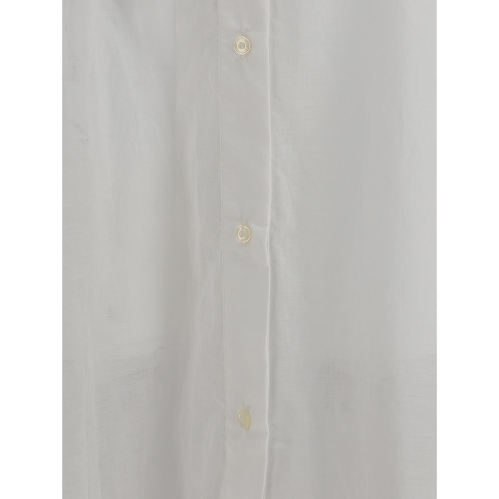 The Latest’s long chemisier Dress is made of cotton with a lightweight and versatile design. The front button closure and wide raglan sleeves lend a relaxed yet sophisticated look. Adjustable button cuffs allow you to customize the fit of the sleeves, while the two side welt pockets add practicality. The semi-transparent design and oversize fit complete the dress, creating a sleek, contemporary effect. Ideal for those seeking a comfortable yet stylish garment.