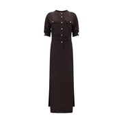 Tom Ford’s Long chemisier Dress is a sophisticated and versatile piece featuring a sleek crew neck and a front button closure. The adjustable waistband via a removable belt allows you to customize the fit, while the button-adjustable long sleeves add a practical and stylish touch. The two front patch pockets with flaps and buttons, along with the two side welt pockets, offer functionality and refined details. An elegant back slit lends movement to the dress, which features an all-over repeating vertical pattern for a visually elongating effect.