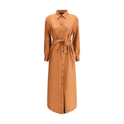 Tom Ford’s silk Dress is an elegant chemisier style with a classic collar and deep slits on the side panels, adding a bold and sophisticated touch. Adjustable buttoned cuffs offer a customizable fit, while the matching, knotted sash at the waist emphasizes the silhouette with a classy detail. A dress that combines sophistication and modernity, perfect for special occasions.