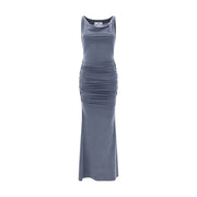 Vivienne Westwood’s Liz Long Dress is an elegant and sensual garment with a sleeveless, draped pattern that hugs the form in a highly sophisticated way. Drapes create a fluid, enveloping effect, accentuating the silhouette in a refined way. The cowl neckline adds a distinctive and modern touch, making the dress perfect for special occasions that call for a bold and elegant look.
