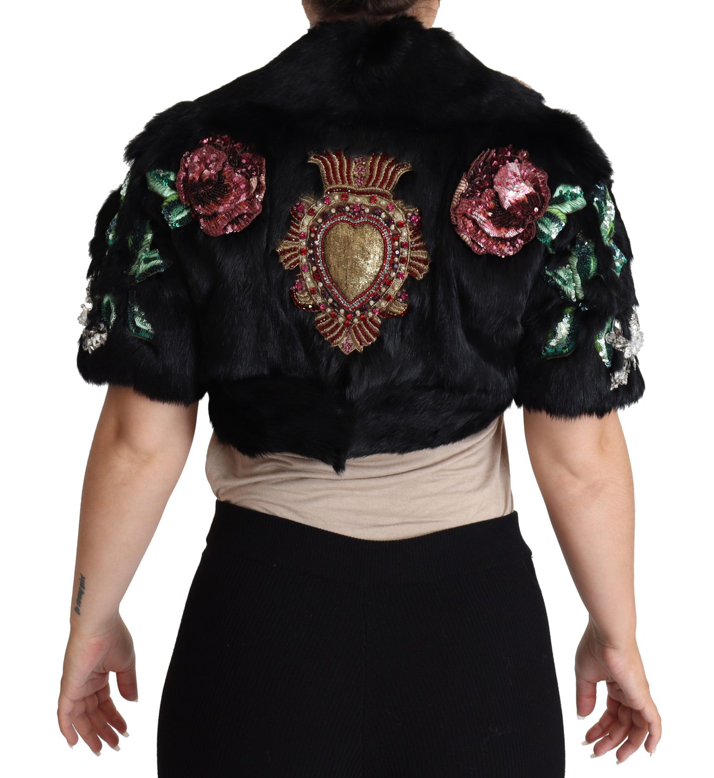 Inform when this item available Dolce & Gabbana Black Rabbit Fur Crystals Sequin Coat