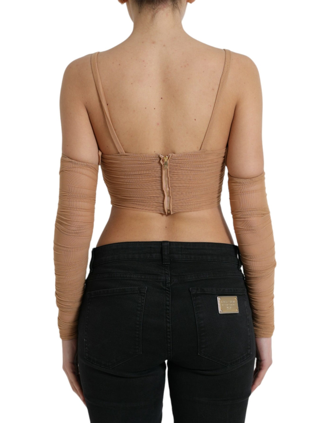 Dolce & Gabbana Brown Nylon Stretch Open Shoulder Cropped Top - IT40|S