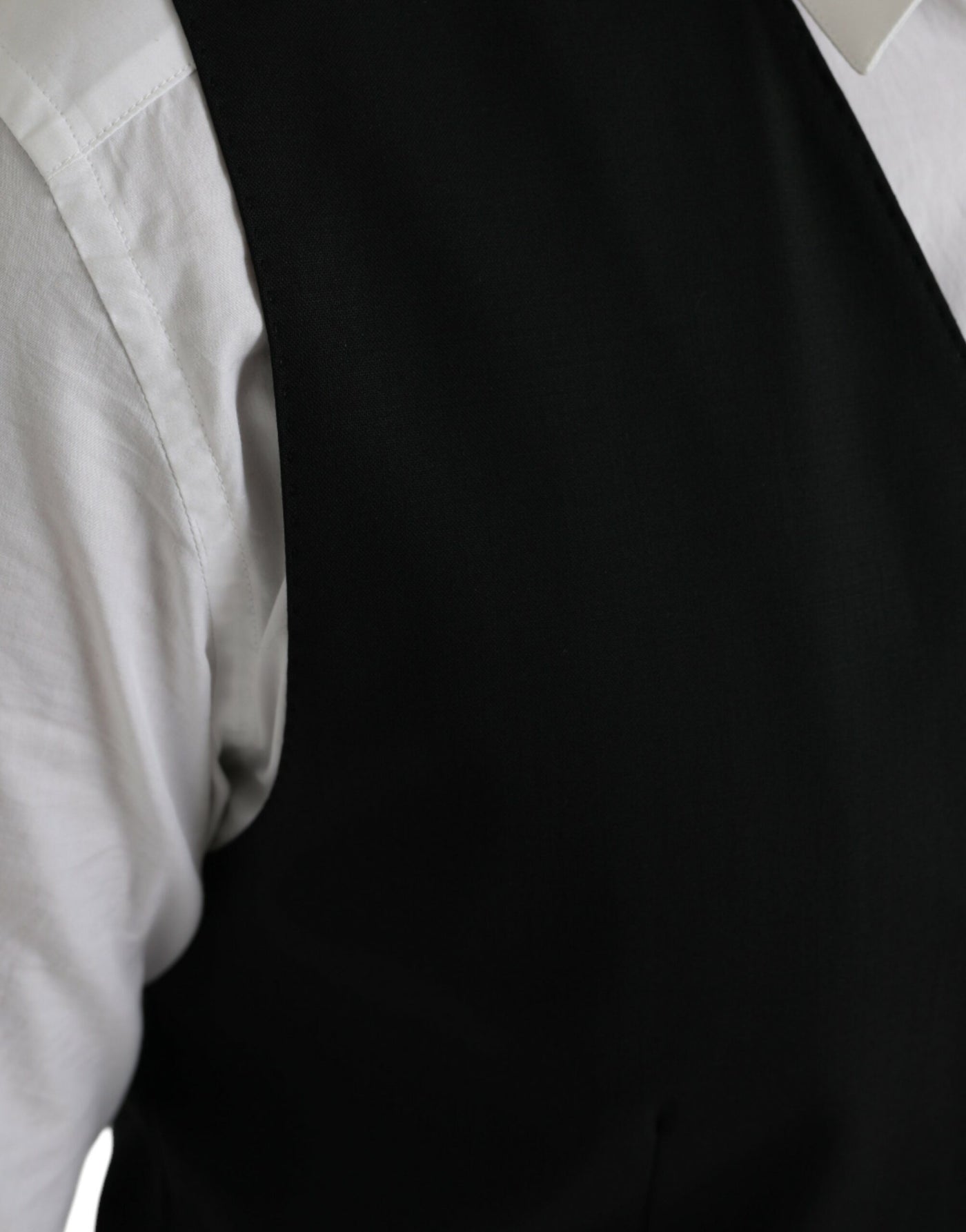 Dolce & Gabbana Black Wool Formal Dress Waistcoat Vest