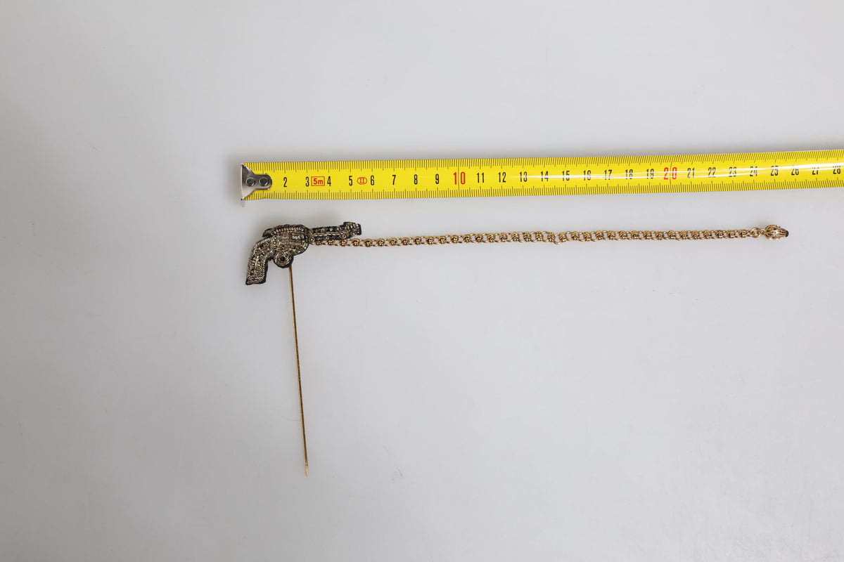 Dolce & Gabbana Black Gold Brass Copper Revolver Brooch Lapel Pin