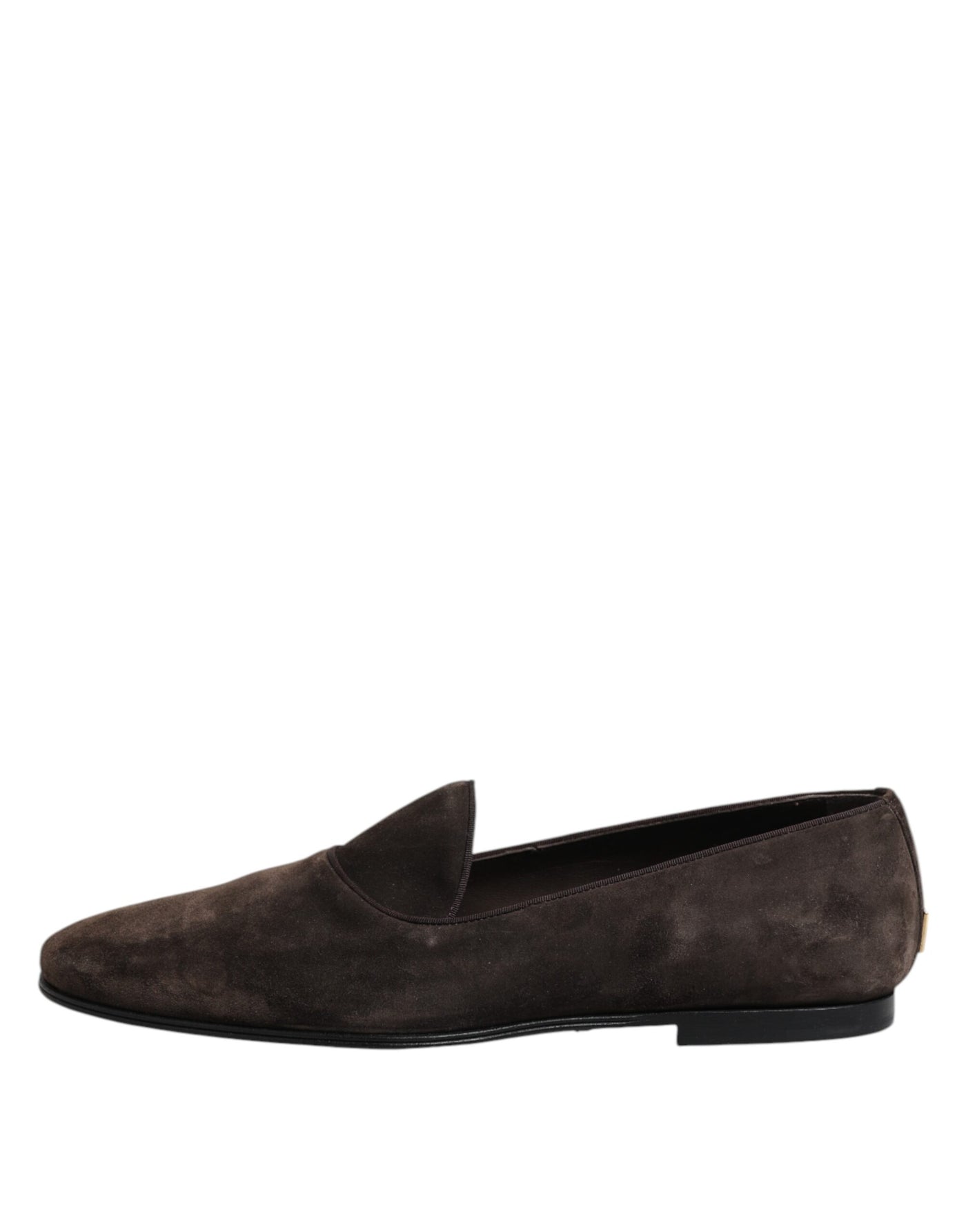 Dolce & Gabbana Brown Velvet Leather Slip On Loafers Shoes