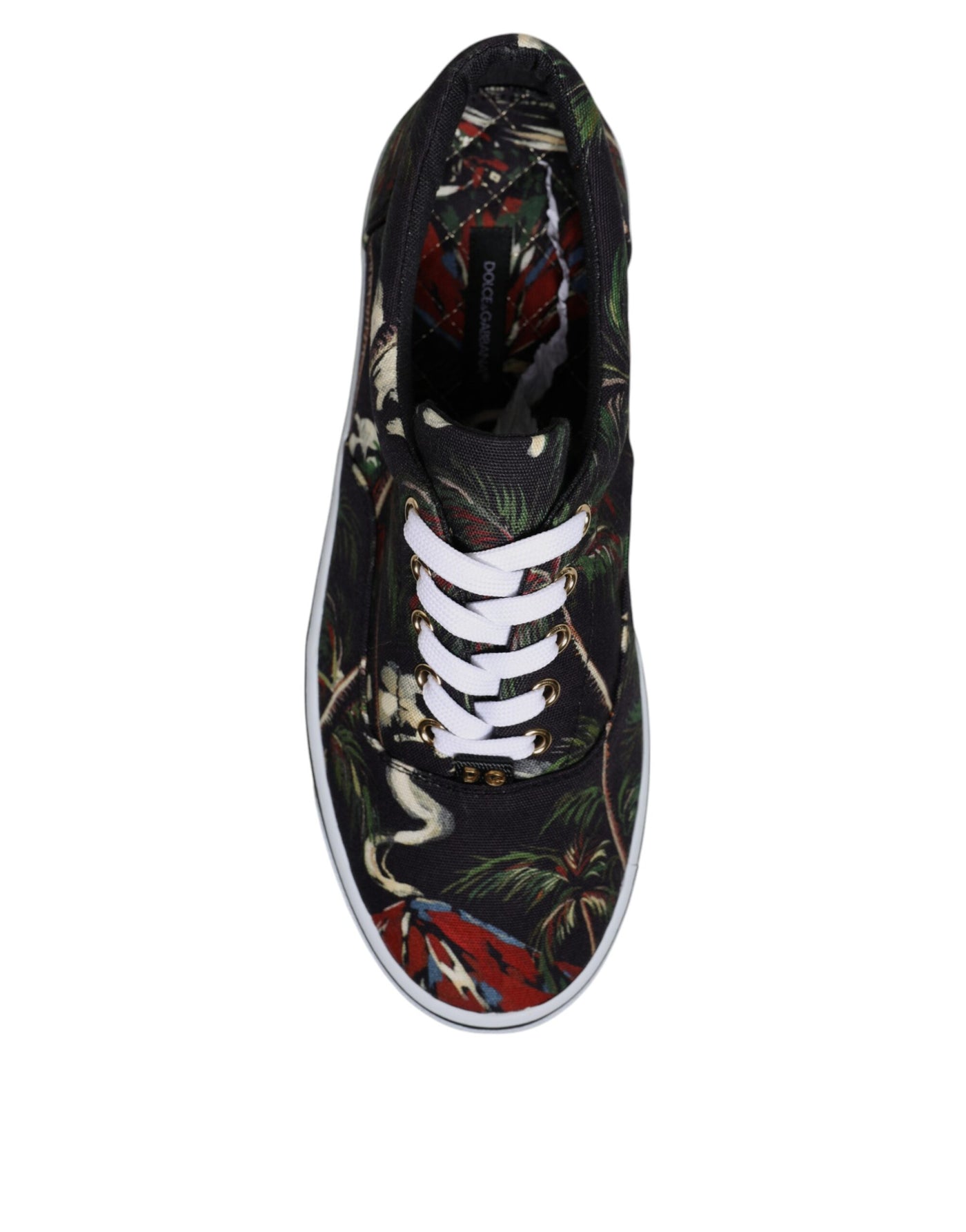 Dolce & Gabbana Black Tropical Print Low Top Sneakers Shoes