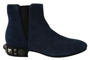 Dolce & Gabbana Blue Suede Embellished Studded Boots Shoes