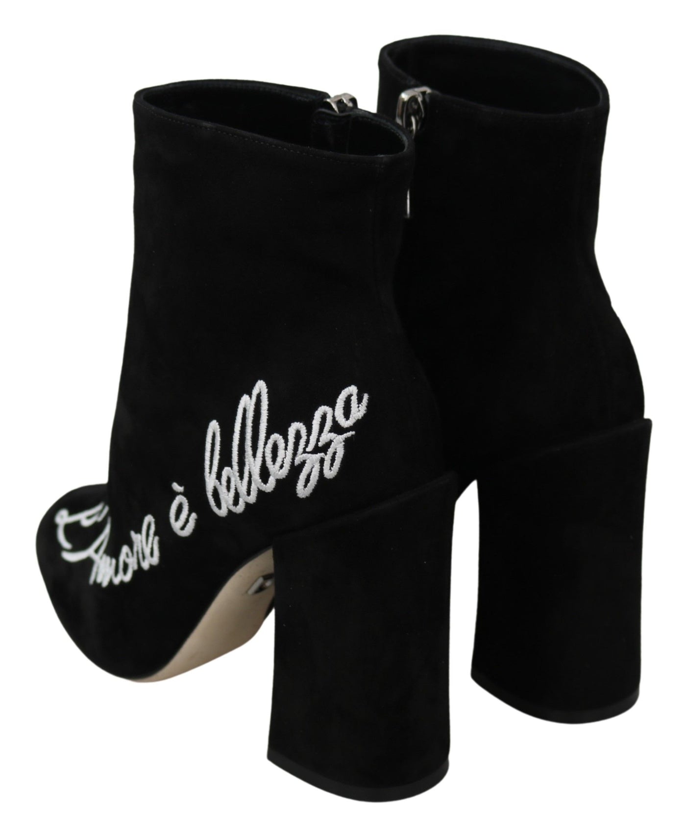 Inform when this item available Dolce & Gabbana Black Suede L'Amore E'Bellezza Boots Shoes