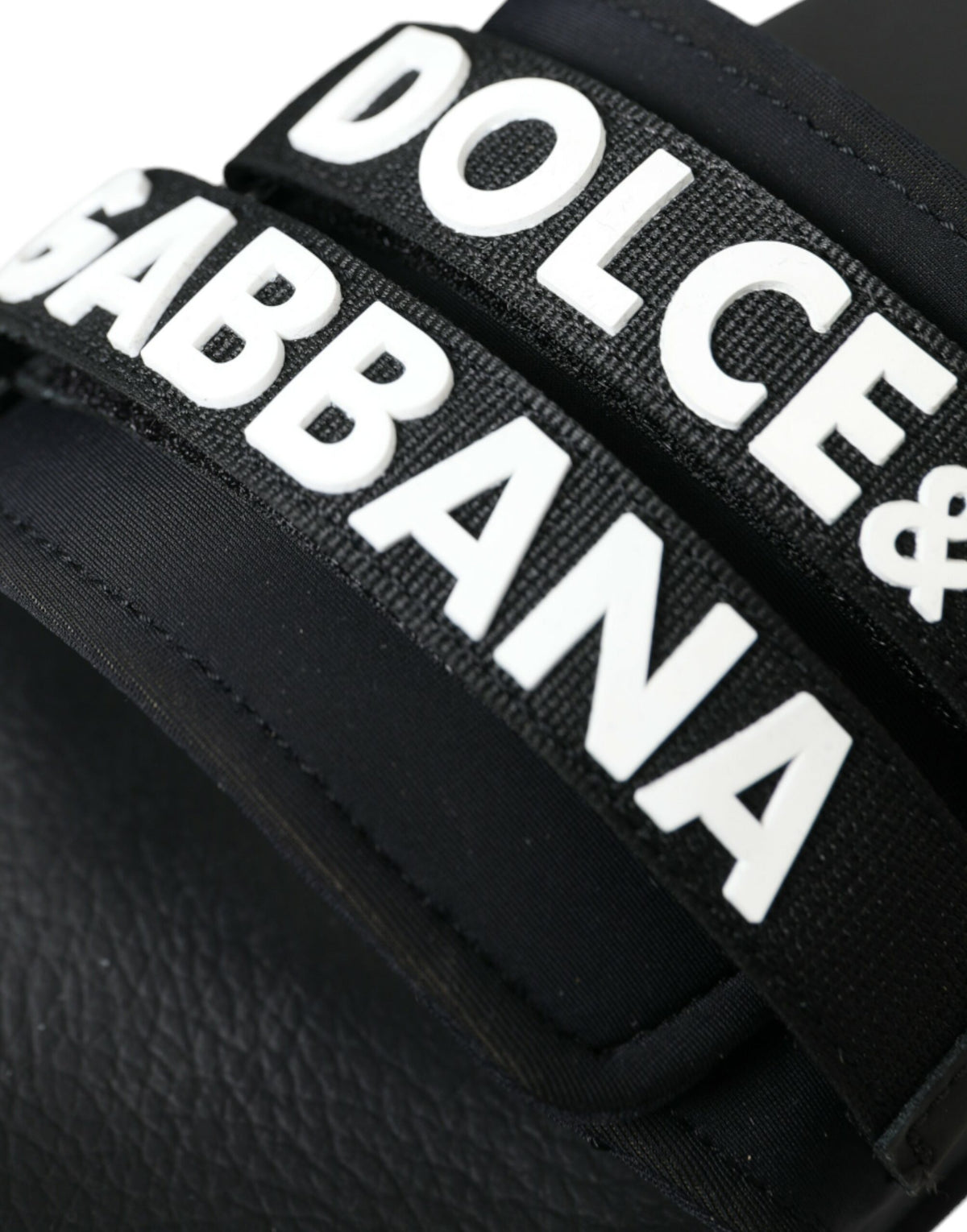 Dolce & Gabbana Black Neoprene Slides Flats Beachwear Shoes