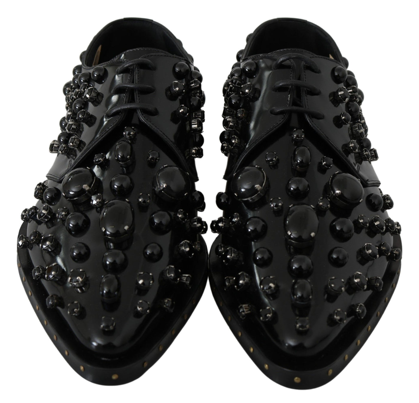 Dolce & Gabbana Black Leather Crystals Dress Broque Shoes