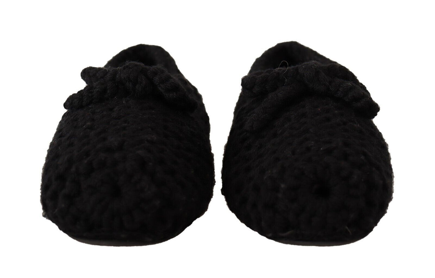 Dolce & Gabbana Black Slip On Ballerina Flats Wool Knit Shoes